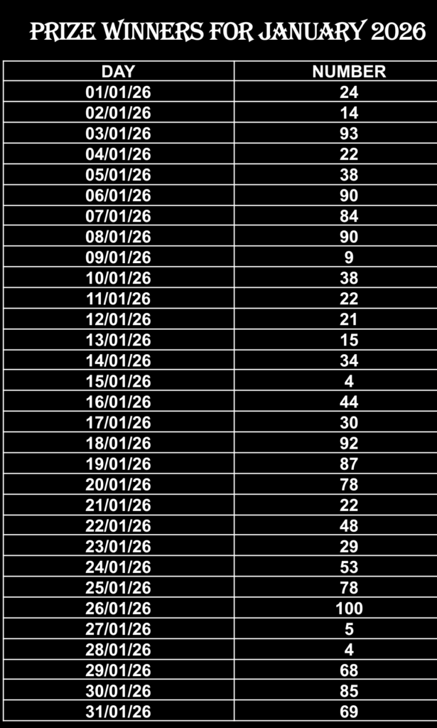 PRIZE WINNERS FOR JANUARY 2026