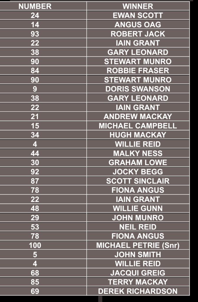 THURSO FC PRIZE WINNERS FOR JANUARY 2026