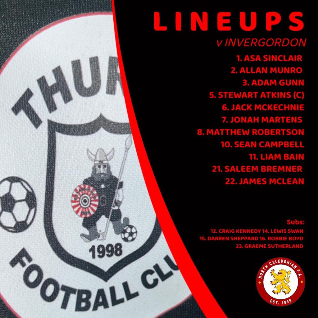 Latest result – Invergordon 3-2 Thurso – NCL. Vikings goals from Saleem Bremner and Jonah Martens.